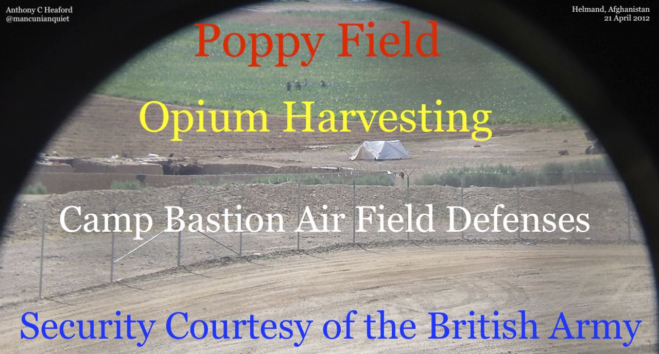 Political: I know of no political or military consequences or accountability for our complicity in Afghan opium production. The British officers who allowed it got medals, tea with the queen and promotions, as did the British officers who allowed it to continue after the Taliban’s 2012 airfield raid. Members of parliament and government ministers refuse to pursue the matter and move on to executive jobs with the war profiteers. Military and civilian police have proved utterly corrupt, refusing to accept the incontrovertible evidence.