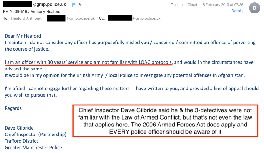 -refused to investigate my evidence by making up the law and referring to the Law of Armed Conflict