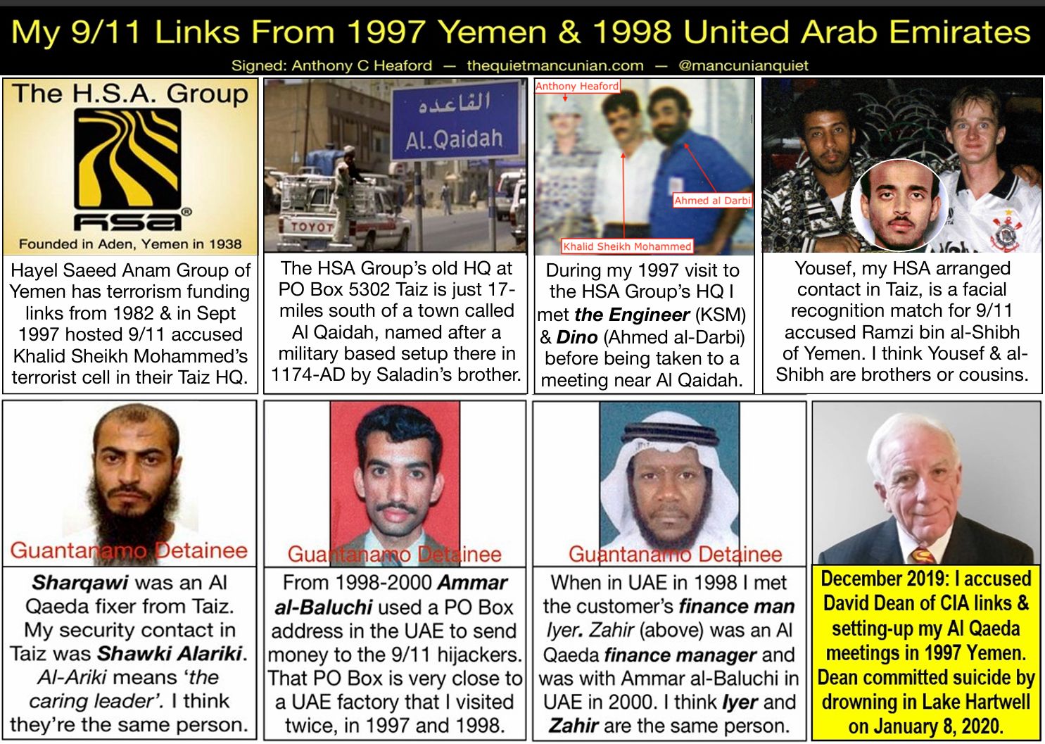 I barely know where to begin, what to include, what to leave out... 1962 maybe good. That marked the beginning of the Saudi backed Wahhabi Muslim World League. Perhaps the precursor in 1957 is better, when Britain and France endured their Suez crisis. Backing religious extremists against nationalists like Nasser or the Socialists in Yemen could have seemed acceptable to the oil company bosses and Intelligence agencies. Or we could start at the Battle of Sabilla in 1929 Arabia. That's when the Sauds used British armour, machineguns & planes to decimate the Ikhwan, a murderous band of religious extremists. To make lasting peace the Sauds allowed the Ikhwan who survived to form the new Saudi National Guard. The grandson of a survivor of the battle served in the National Guard before reviving Al Ikhwan in opposition to corruption in the kingdom. He led the Grand Mosque Seizure in 1979, where two of Osama bin Laden’s brothers were said to be present, but not Osama. Or just focus on Sayyaf and KSM? I'm going to sleep on it; it's tiring doing everyone elses job - I am a witness, not police, investigator or journalist. I'm a dyslexic mechanic. Thanks to anyone still reading this far.