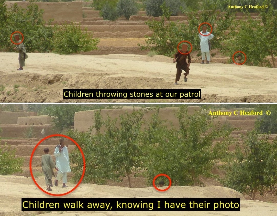 British army tactics to stop Afghan children harrassing our vehicle patrols did not work - that's why the kids were still stoning and robbing us in 2012. During one of the five patrol briefings I attended we were told if stones didn't scare the kids we should fire mini-flares (incendiary munitions) so they 'bounce off the floor next to them' , and if that didn't work to threaten them - children - with loaded pistols. The offensive use of incendiary munitions is a War Crime and although I only heard that order once and never saw it carried out, I have heard two confirmable reports of British mini-flares being fired as warning shots towards Afghan civilians. One was fired towards an Afghan male walking with a wheelbarrow towards some British soldiers, the other was at a civilian vehicle that got too close to a British military vehicle. The videos below show the inaccuracy of mini-flares and an American Special Forces soldier describing the horrific injuries one child suffered after being hit in his stomach by a mini-flare. The Americans were keeping him alive in their medical facility but the wound wasn't healing and discharging him to local care would have been a death sentence because of infection. The American said the flare had been fired because the boy, Muhammad, had been playing football in the street; he says the flare fired by a NATO ally hit a tree and 'bounced' down into the eight year old's stomach. I don't know what happened to Muhammad after that, whether he survived or not.
